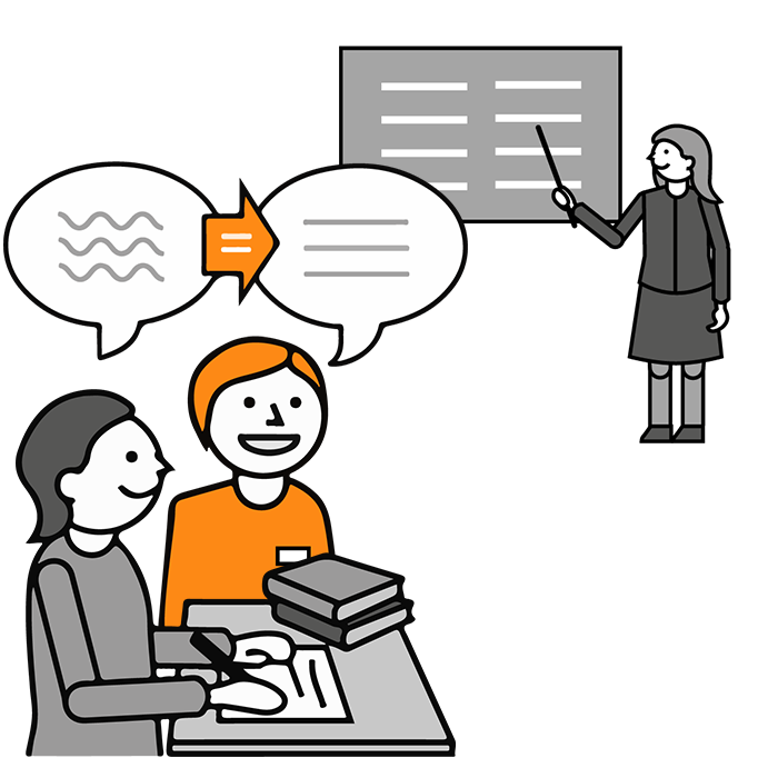 tulkki tulkkaa opettajan opetusta ja opiskelijan viestejä